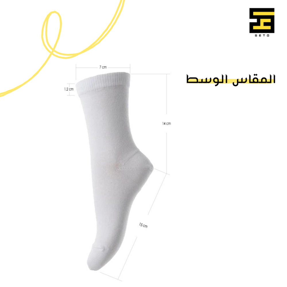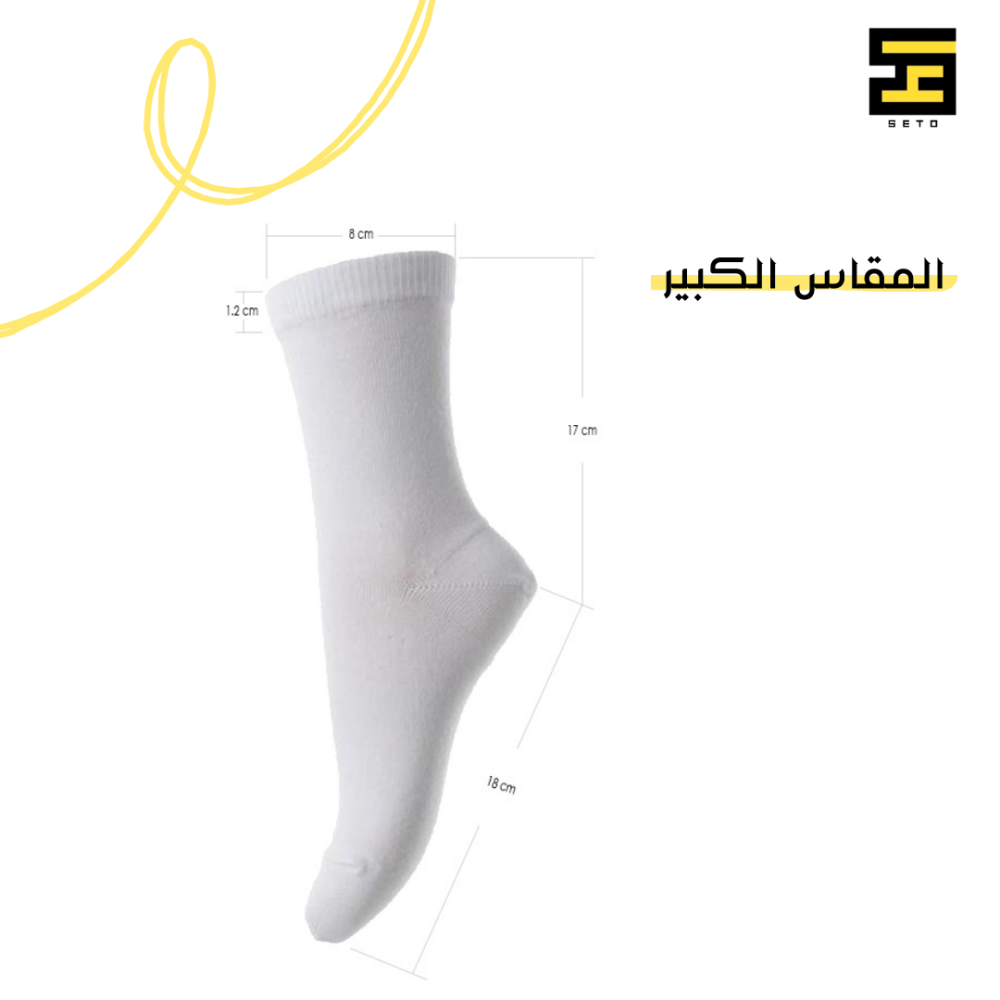 • ثلاثة مقاسات مميزة: نوفر الجوارب بثلاثة مقاسات تناسب الجميع، مع صورة توضيحية لأبعاد كل مقاس لسهولة اختيار الأنسب لك.
