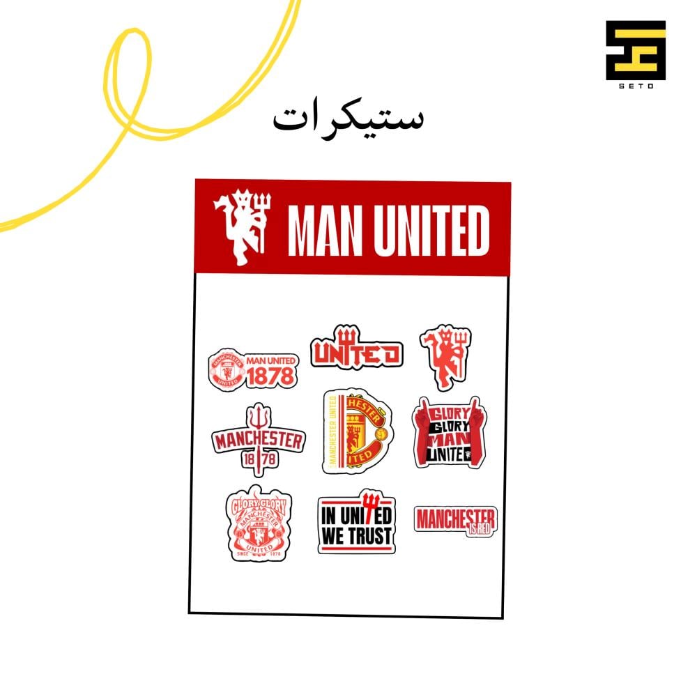 • ٩ ستيكرات حصرية مثالية للجوال، اللابتوب، أو أي سطح يعكس عشقك لليونايتد.